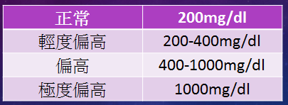 當三酸甘油脂數值過高時,會導至血管硬化,引起急、慢性胰臟發炎。三酸甘油脂高可能合併有高膽固醇。
