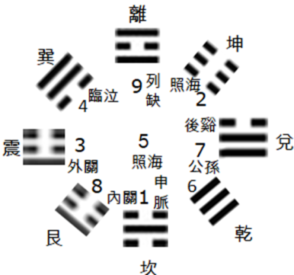 ¤K¨ö¡GÂ÷¨ö¡]☲¡^¡A§I¨ö¡]☱¡^¡A°®¨ö¡]☰¡^¡A´S¨ö¡]☴¡^¡A©[¨ö¡]☷¡^¡A§¢¨ö¡]☵¡^¡A¦á¨ö¡]☶¡^¡A¾_¨ö¡]☳¡^¡C