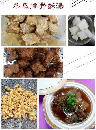 1.排骨走水瀝乾醃漬1小時後裹粉,以中高溫油炸上色。