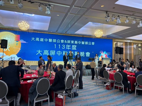 大高雄中醫師公會與屏東縣中醫師公會,於9月22日晚上假漢來飯店巨蛋會館龍鳳廳合辦,113年度大高屏中秋聯歡晚會,會員出席與貴賓蒞臨踴躍,晚會由大高雄公會盤志瑋理事長與屏東縣公會陳啓禎理事