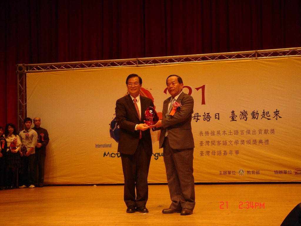 作。執教時間,亦多達18年之久,意外也獲得了教育部「全國推展本土語言傑出貢獻獎」的最高殊榮。