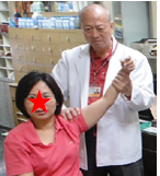 術者用雙手抱揉傷者的肩部,使之感到有輕鬆、微熱感。
