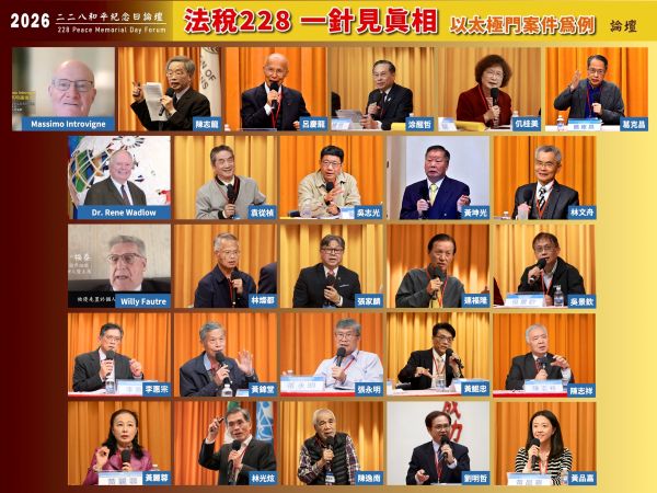 為紀念二二八和平紀念日,聯合國NGO世界公民總會、太極門氣功養生學會及臺灣財經刑法研究學會等近30個民間團體,2月28日在臺灣大學舉辦「2026年和平紀念日論壇-法稅228 一針見真相」 -以太極門案件為例-,匯聚人權與法學專家從歷史反思出發,探討良心、民主與法治的價值,呼籲深化人權保障,讓和平與正義成為台灣前行的力量。